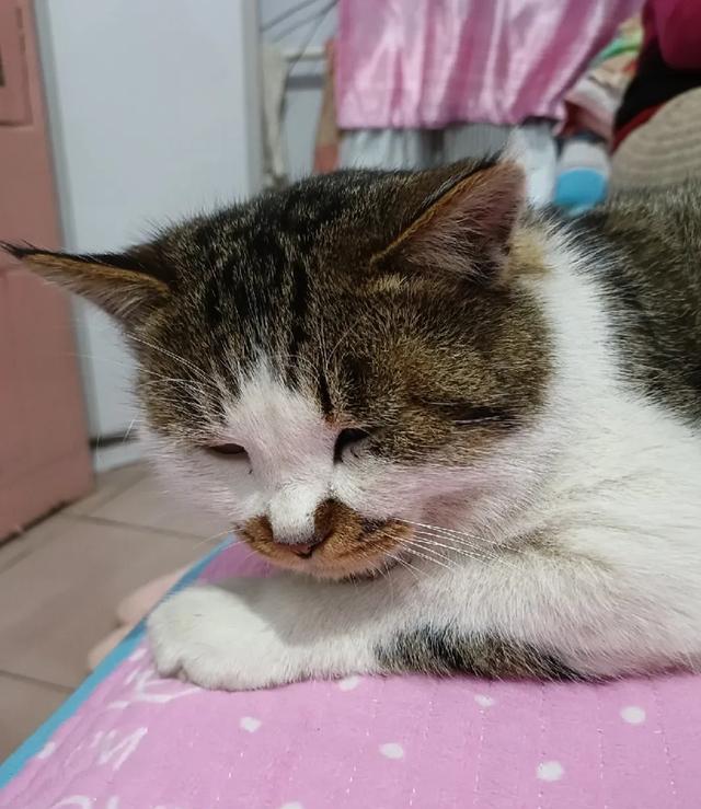 这是我第一次养母猫,花花刚抱来的时候,才1个多月大,但是已经会打呼噜了,我每次摸它,它就会用呼噜声回应我。