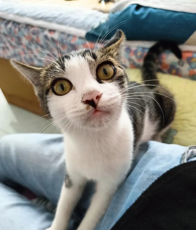 小咪特别黏人,只要我坐到它旁边,它就会跑到我的身上,在我腿上趴着,趴一会儿就起来,然后看着我又喵喵叫,我也不知道它想干什么。