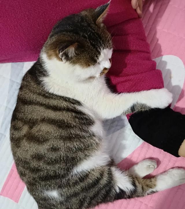 花花现在已经快6个月了,特别喜欢踩奶按摩,这可能也是它的一种撒娇方式。