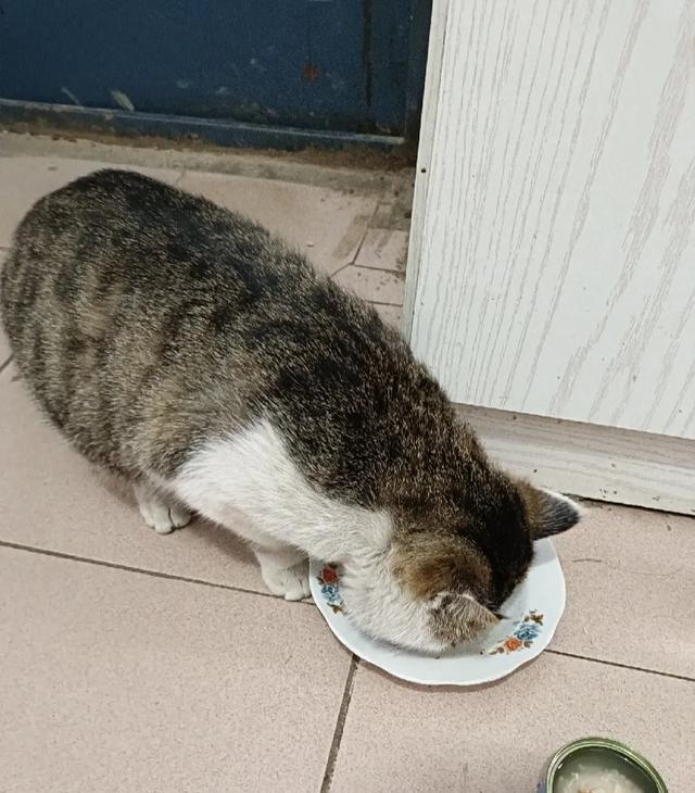 我到短尾猫的盘子里一看,猫粮还有很多呢,短尾猫看到我来了,抬头看看我,然后继续吃猫粮,我看它吃猫粮,回去继续收拾屋子。